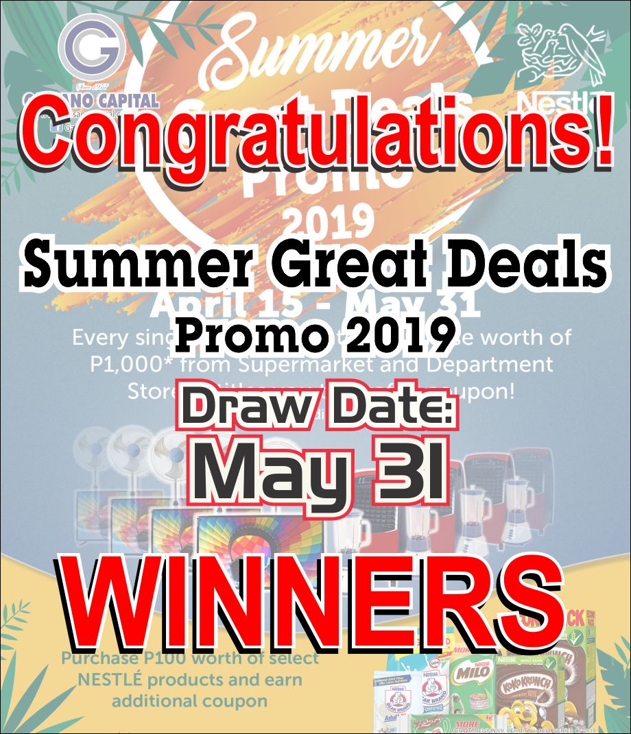 FAMILY HAKOT FOR FREE GRAND DRAW – NOVEMBER 16, 2019 WINNERS OF 50,000 FREE GROCERY NAMES ADDRESS BEBB TEJADA SURIGAO CITY JAIME RIVERA DANAO CITY JONAH ESPELLETA MANDAUE CITY Fresse Sumilhig San Carlos City MARILOU A. AMANTE MASBATE CITY ROSE ANN MOFAN CLARIN MARIAM MAHUSAY CEBU CITY NIMFA A. ALAO LAPU-LAPU CITY JOSEPHINE LOGROÑO CEBU CITY CARMELIZ MALANAY CEBU CITY LEONIDA BAYAO CEBU CITY JEANY J. SILLA PAGADIAN CITY Jenelyn Troyo Tacloban City WINNERS OF 30,000 FREE GROCERY NAMES ADDRESS MILAGROS BALDENIA SURIGAO CITY IRENE OÑES COMPOSTELA REMUEL PANIMDIM MANDAUE CITY Teresita Abona Neg. Occidental REMEDIOS T. ESQUIVIAS MASBATE CITY ANGIE R. DEIPARINE OZAMIZ CITY ANICETA MALOLOY-ON CEBU CITY VIVIAN BAGUIO LAPU-LAPU CITY ANN V. JOSEPH CEBU CITY IRIS B. LLOREN CEBU CITY TESSIE BARICUATRO CEBU CITY PRECIOUS JANE TAGHOY PAGADIAN CITY Rodalyn Sabanal Tacloban City WINNERS OF 20,000 FREE GROCERY NAMES ADDRESS MERALUNA B. NATAD SURIGAO CITY CHERRYLYN EULDAN CATMON, CEBU MILAGROS SONIDO MANDAUE CITY Julie Bern NEGROS OCCIDENTAL MARIA LEAH M. LOBIN MASBATE CITY ROSE ANN MOFAN CLARIN MARY ISABELITA CABAGA CEBU CITY LEXTER NEPA LAPU-LAPU CITY SHIELA CORDOVA CEBU CITY DENNIS TURA CEBU CITY SEGUNDINO CABUNILAS JR. CEBU CITY PETRA C, BUSTILLO ZAMBOANGA DEL SUR Herminia Llemit TACLOBAN CITY -