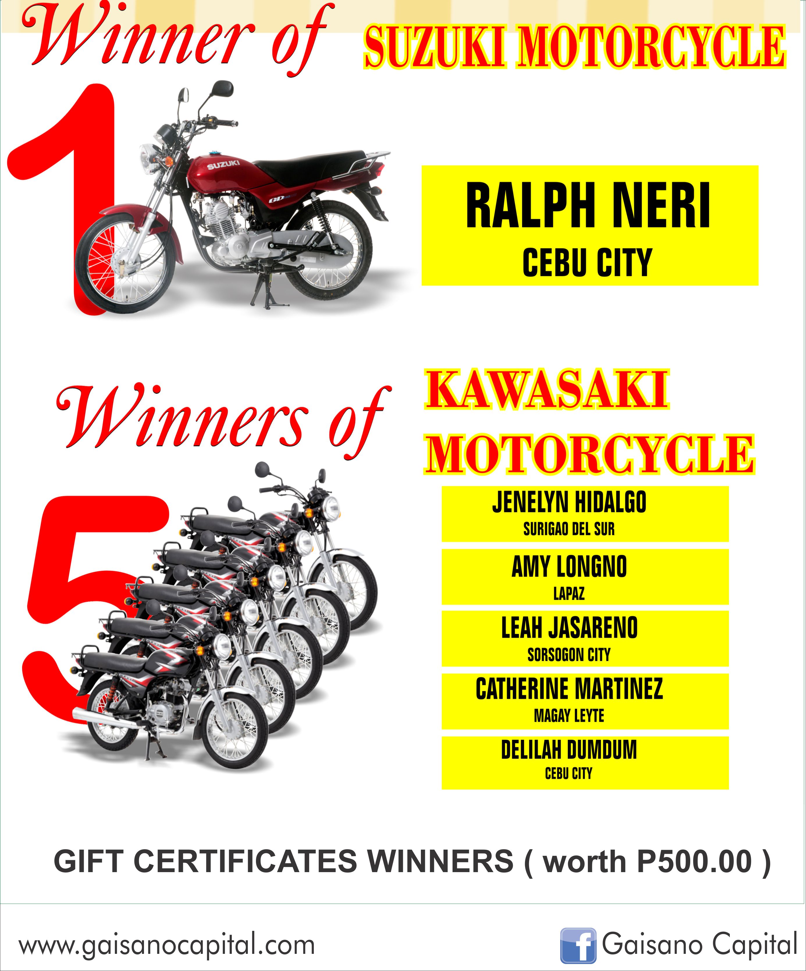 | WINNERS OF SUZUKI MOTORCYCLE |