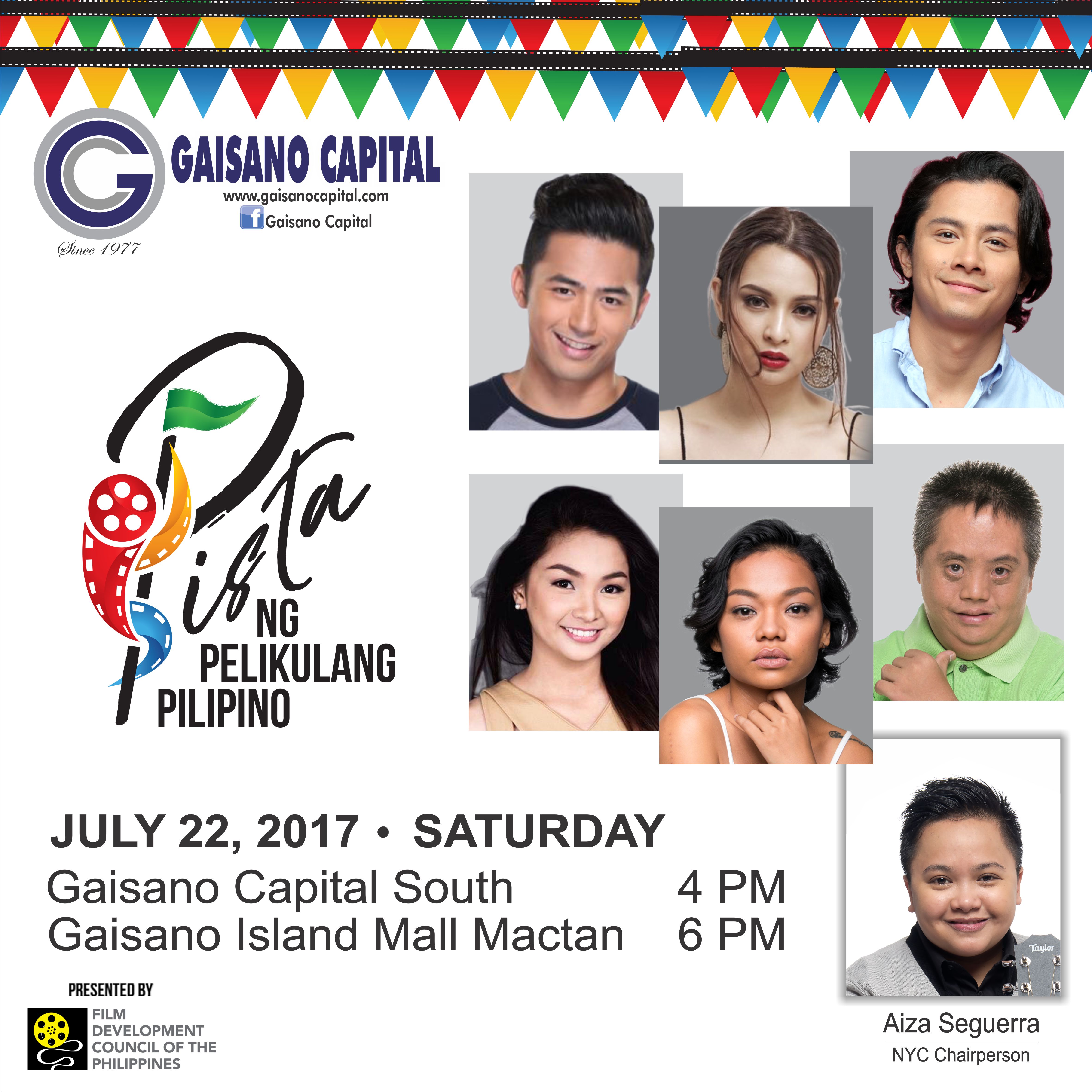 Pista ng Pelikulang Pilipino will bring some of the cast from the 12 selected films at Gaisano Capital Southth (4PM) and at Gaisano Island Mall Mactan (6PM)on July 22, 2017.