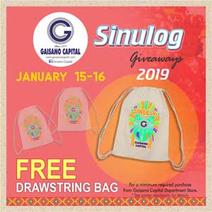 It’s Cebu’s Sinulog Festival! Get these festival edition of drawstring bag FREE when you purchase P500 worth of items from the Department store. Shop at your nearest Gaisano Capital Cebu branch.