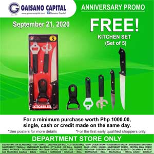 For a minimum purchase worth Php 1,000.00 single, cash or credit made on the same day on any Gaisano Capital Department Store