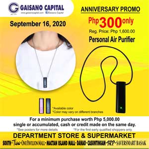 Promo valid on the following branches only, Gaisanao Capital South, Gaisano Tisa, One Pavilion Mall, Mactan Island Mall, Gaisano Capital Danao, Gaisano Capital Casuntingan, Gaisano Capital SRP & Gaisano Saversmart Basak.