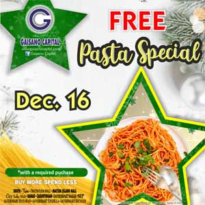 On December 16, 2023, with a required purchase on Gaisano Capital Supermarket, Customers can have Pasta Special for Free.
