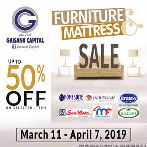 decors and home accessories that are of high quality at a great discounted price of up to 50% off. Furniture and Mattress sale is from March 11- April 2, 2019. Shop now at the nearest Gaisano Capital stores.