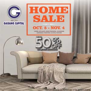 Pamper your home with stylish and contemporary furniture, decors, home accessories and quality appliances during our HOME SALE from October 5-November 4.. Get great deals of up to 50% OFF on wide selection of items. Visit Gaisano Capital store near you.