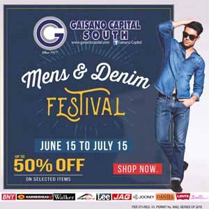 MENS DENIM: Don’t miss out on our MENS & DENIM FESTIVAL (June 15-July 15) that offers great discounts on different brands of mens denim and clothing, shoes and accessories. Visit the nearest Gaisano Capital near you.