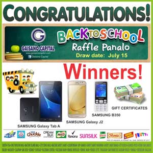 | WINNERS OF BACK TO SCHOOL RAFFLE PROMO |